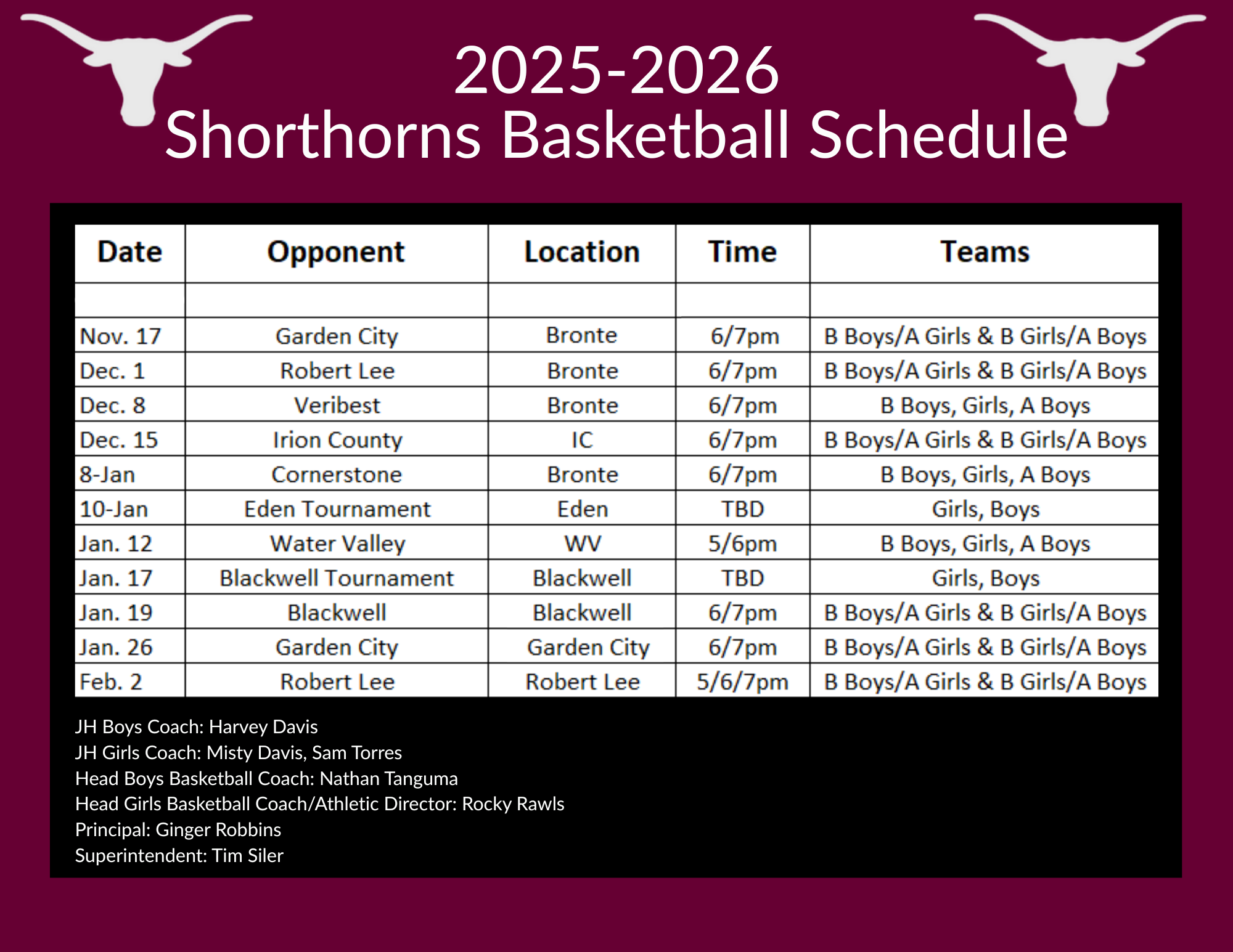 ALL SCHEDULES ARE SUBJECT TO CHANGE AT ANY TIME